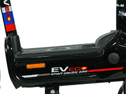 Để chân có khoảng cách phù hợp Xe đạp điện EV S4 với để chân được đặt ở khoảng cách phù hợp, kéo dài theo phần thân dưới của xe, tạo sự thoải mái cho người điều khiển khi vận hành xe trong khoảng thời gian dài. Phía dưới để chân còn có ngăn đựng bình ắc quy có khả năng chứa tối đa 4 bình ắc quy nhỏ giúp xe vận hành quãng đường lên đến 50km cho 1 lần sạc. Phía trên để chân được trang bị một thảm để chân với khả năng chống nước mưa, có các g nhỏ chống trợn trượt bảo vệ cho người điều khiển khi vận hành trong điều kiện trời mưa. |