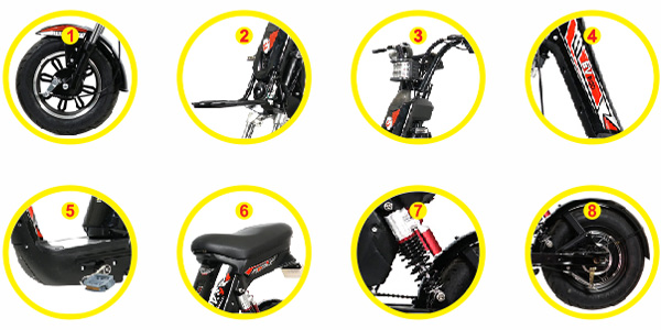 Cải tiến mạnh mẽ ở phần bánh trước Xe đạp điện EV S9 SPORT có phần bánh trước được cải tiến mạnh mẽ với lốp cao su không ruột mặt tiếp xúc lớn và độ bền cao. Thắng cơ nằm ở tâm bánh xe giúp người sử dụng dễ dàng làm chủ tốc độ của chiếc xe theo quá trình vận hành, vành dúc hợp kim với độ bền cao và chông ô xi hóa cao trong quá trình sử dụng. Giảm sóc êm ái trong quá trình vận hành giúp xe dễ dàng vận hành qua các dạng địa hình khác nhau. thăng cơ an toàn đồng bộ giúp người điều khiển dễ dàng làm chủ tốc độ trong quá trình vận hành. |