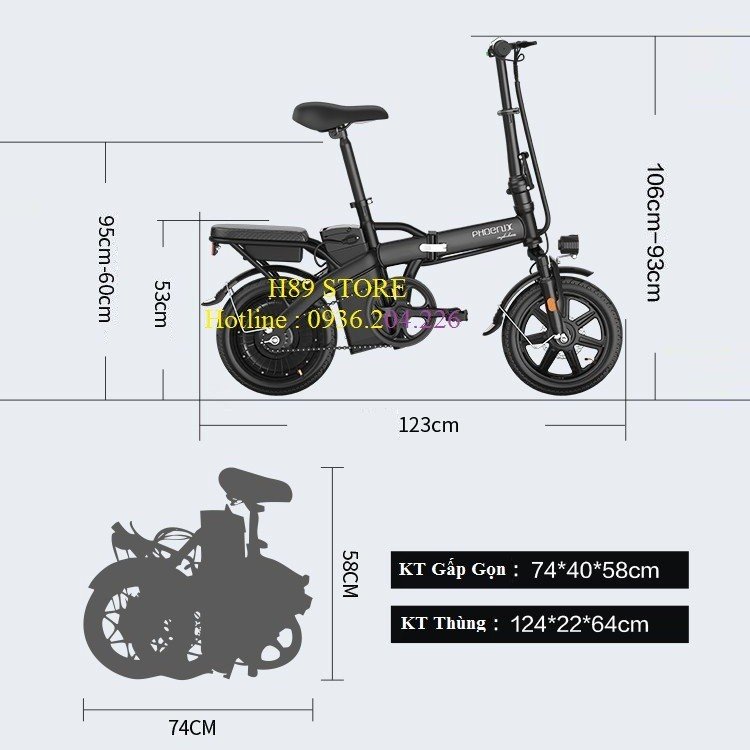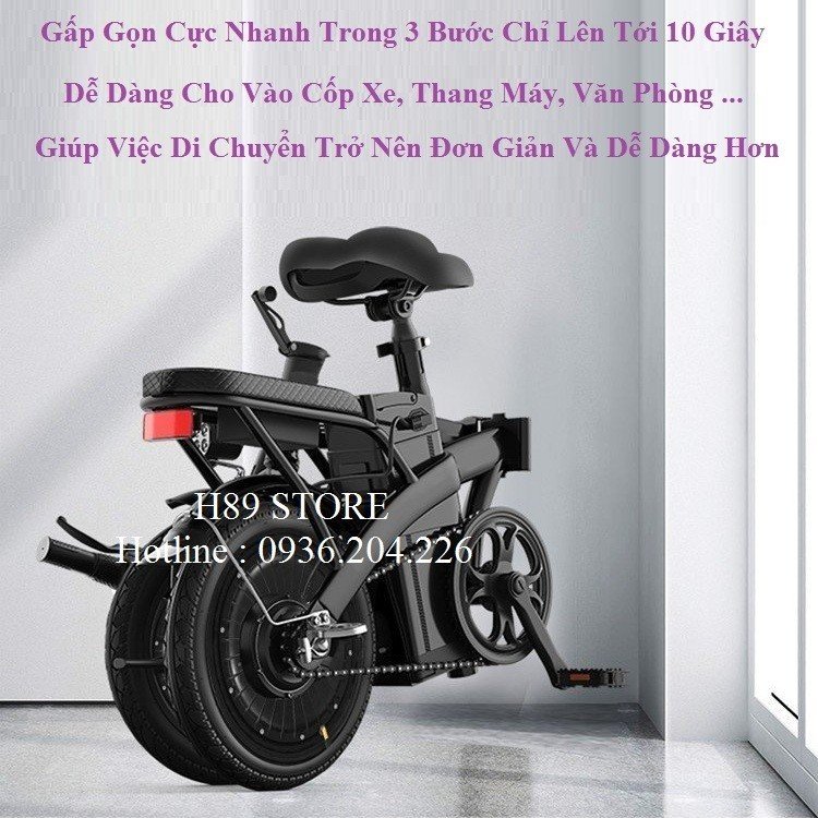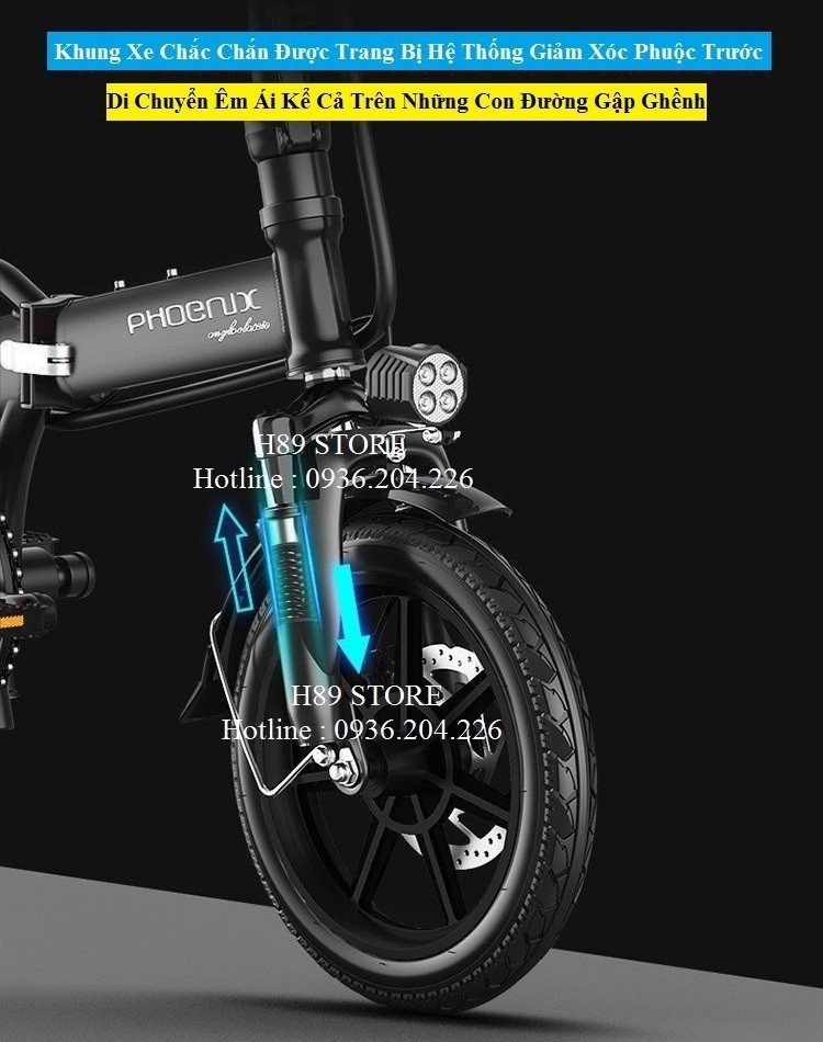 - Thiết kế gấp gọn dễ dàng, tiết kiệm diện tích, động cơ mạnh mẽ, bố trí phuộc giảm sóc trước.