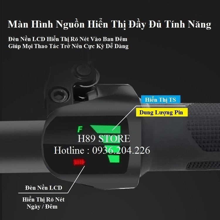 - Màn hình LCD thông minh hiện thị tổng số dặm, thời gian, pin còn lại, chế độ hiện tại