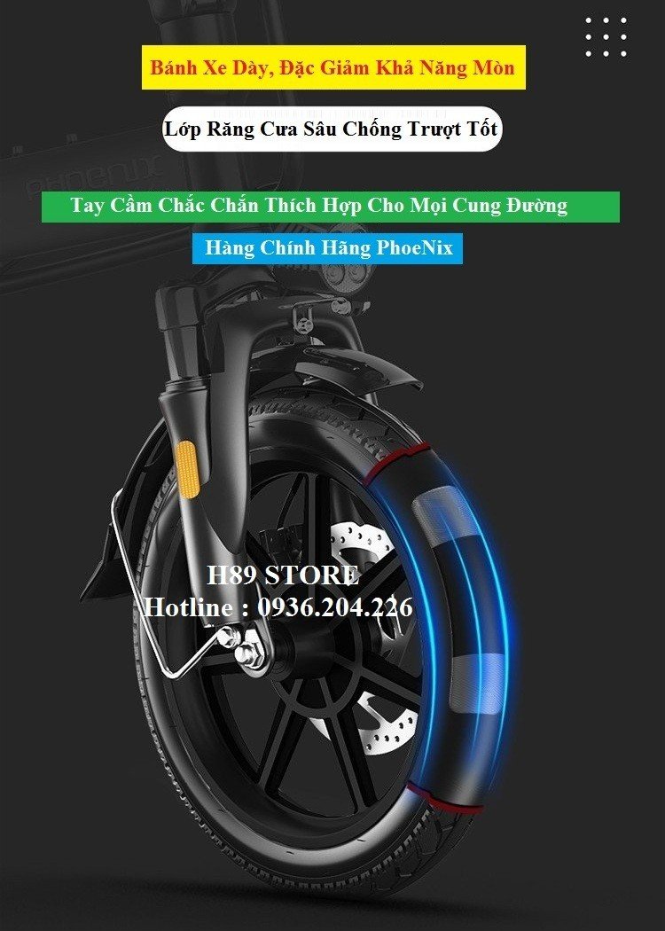 - Vành xe đúc chắc chắn, lốp không săm độ ma sát cao. Bánh xe động cơ 14 inch