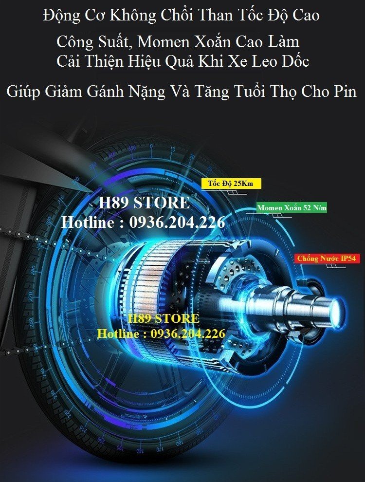 + Động cơ không chổi than, tốc độ 25Km/h. Quãng đường di chuyển xa lên tới 32Km.