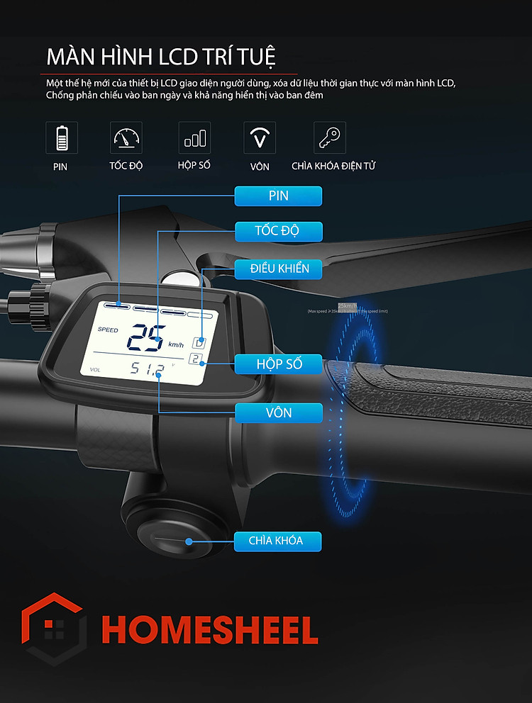XE ĐAP ĐIỆN GẤP GỌN THÔNG MINHXE ĐẠP ĐIỆN GẤP HOMESHEEL T5S 2022 ĐƯỢC TRANG BỊ MÀN HÌNH LCD HIỂN THỊ HIỆN ĐẠI