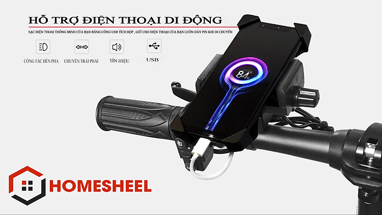 Điểm nổi bật của mẫu xe đạp điện gấp này là có giá để điện thoại khi bạn có nhu cầu sử dụng khi đi xe đồng thời có cổng sạc để nếu bạn hết pin điện thoại giữa đường thì đó là chỗ cứu cánh tuyệt vời, thật tiện lợi khi bạn vừa chạy xe vừa có thể tìm đường đi dễ dàng trên điện thoại mà vẫn đảm bảo an toàn trên đường.