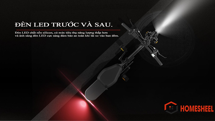 Xe đạp điện gấp gọn Homesheel T5S 2022 được trang bị với hệ thống đèn led hiện đại ở phía trước có thể khuếch tán ánh sáng mạnh hơn, sáng hơn mà tiêu thụ năng lượng lại vô cùng thấp, kết hợp với đèn xi nhan ở phía sau đảm bảo người điểu khiển dễ dàng quan sát và giữ khoảng cách an toàn khi tham gia giao thông.
