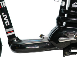 Để chân và bàn đạp song song Xe đạp điện JVC Winter với để chân nhỏ gọn được bố trí ở phần thân dưới của xe được bọc bởi một lớp vỏ nhựa tổng hợp thời trang và chắc chắn được gắn chặt với thân xe thông qua các bát chắc chắn, phía trên là mặt nhựa chống trầy xước với các g nhỏ giúp tăng ma sát khi tiếp xúc. Bố trị song song để chân là cặp bàn đạp được làm từ hợp kim gang và nhựa tổng hợp, giúp người sử dụng dễ dàng lựa chọn chế độ vận hành cơ, sử dụng cho trường hợp xe hết điện và leo dốc cao. |