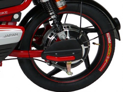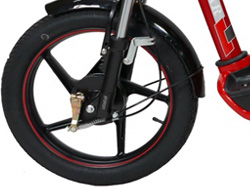 Xe đạp điện Osakar A8 có bánh trước được làm từ vành đúc hợp kim thép 18inch, được bố trí thắng cơ ở tâm, với giảm sóc dầu êm ái và được bao quanh bời lốp cao su không ruột.