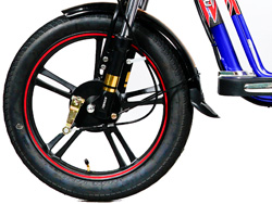 Bánh trước với vành đúc hợp kim Xe đạp điện Sonsu Ruby có bánh trước với vành đúc hợp kim 5 chấu đôi hoàn hảo, được phủ bời một lớp sơn tĩnh điện màu đen huyền bí và điểm nhấn với viền chỉ đỏ bao quanh. Ở tâm của vành xe là thăng cơ an toàn được thừa kế từ công nghệ thắng sử dụng cho xe gắn máy, được đồng bộ hoàn toàn với tay thắng phía trên giúp người sử dụng dễ dàng làm chủ tốc độ trong quá trình vận hành. Nối phần bánh trước với thân xe là cặp giảm sóc em ái, giúp xe có thể vận hành một cách dễ dàng qua các địa hình. |