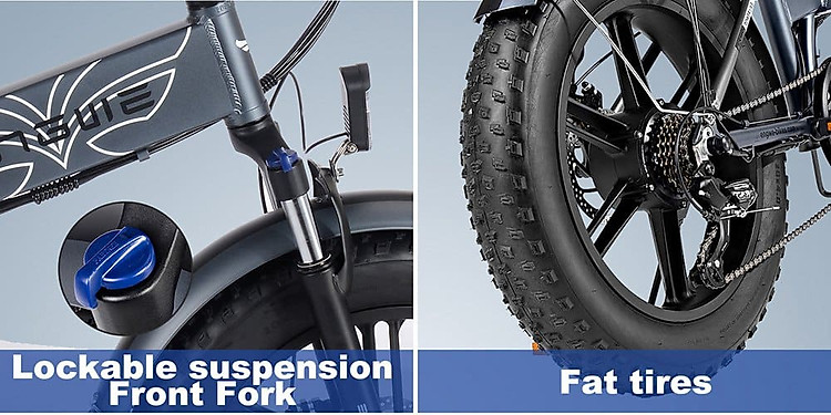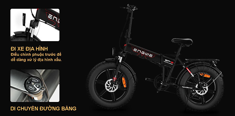 Xe đạp điện Engwe EP-2 Pro được trang bị công nghệ hệ thống chống xóc hiệu quả, giúp xe hấp thụ các chấn động trong quá trình di chuyển một cách toàn diện, duy trì cảm giác lái xe nhẹ nhàng, êm ái trong thời gian di chuyển dài ở địa hình khó mà không gây ra cảm giác đau mỏi. Ngoài ra, xe còn trang bị thêm phuộc trước có khóa, cùng bánh béo chống thủng, chống nổ giúp lái xe êm ái qua mọi địa hình.