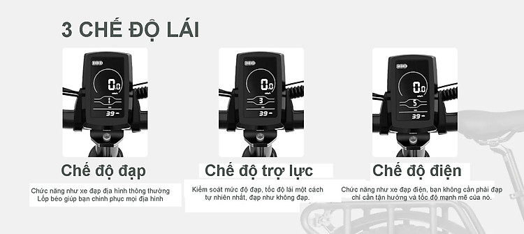 7 tốc độ xe kết hợp 3 chế độ cho bạn lựa chọn: Đạp thường (rèn luyện sức khỏe) – Trợ lực – Điện để bạn tận hưởng hành trình với chiếc xe đạp điện gấp nhỏ gọn ngay cả khi tắc đường.