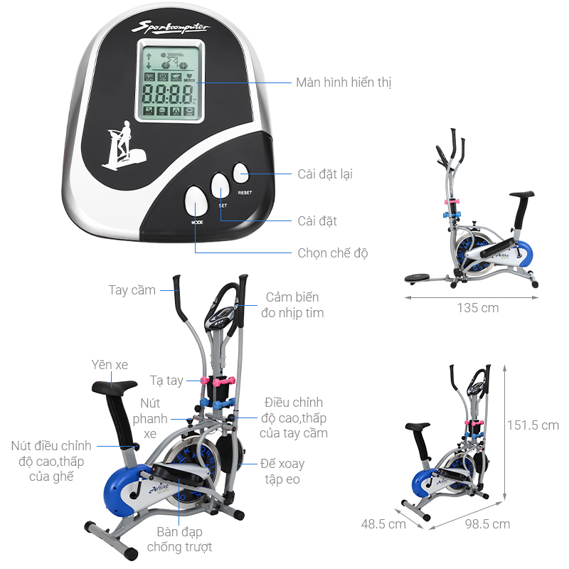 Xe đạp tập thể dục AirBike Sport MO 2085 .Tại nhà đang ngày càng được mọi người yêu thích,và được nhiều gia đình lựa chọn.Đáp ứng được những yêu cầu về thẩm mĩ chất lượng mẫu mã, thực hiện nhiều bài tập trên một chiếc xe. đem đến một giải pháp hoàn hảo đó chính là dòng xe đạp tập toàn thân -có xoay eo.