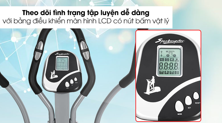 - Đồng hồ đo nhịp tim. hiển thị thời gian- quãng đường tốc độ - lượng tiêu hao calori. Có 2 chế độ tự động và tùy chỉnh.