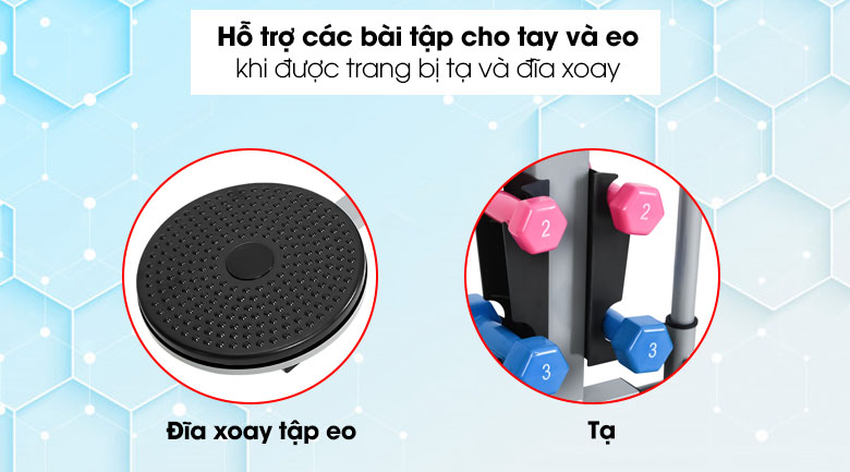 - Đĩa xoay eo 360 độ làm bằng sắt dày. phía trên bàn xoay đúc bằng nhựa ABS tạo cảm giác chắc chắn và an toàn.