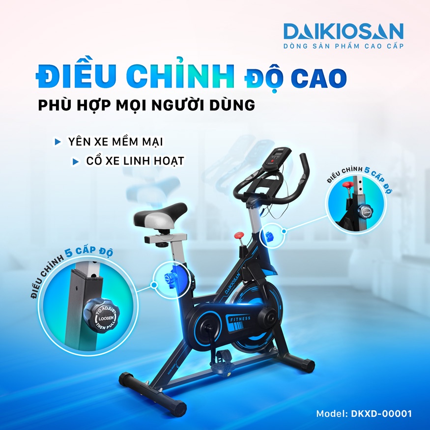 Để đảm bảo có thể điều chỉnh chiều cao phù hợp với từng người, xe đạp thể dục trong nhà Daikiosan DKXD-00001 có thể điều khiển chiều cao của yên xe với 5 cấp độ khác nhau, trong khoảng 10cm, nhờ vậy người tập luyện có thể dễ dàng điều chỉnh dáng tập cho đúng, thoải mái và hiệu quả.