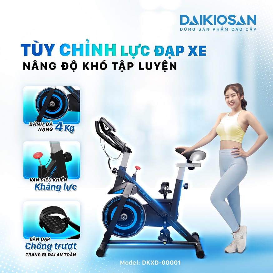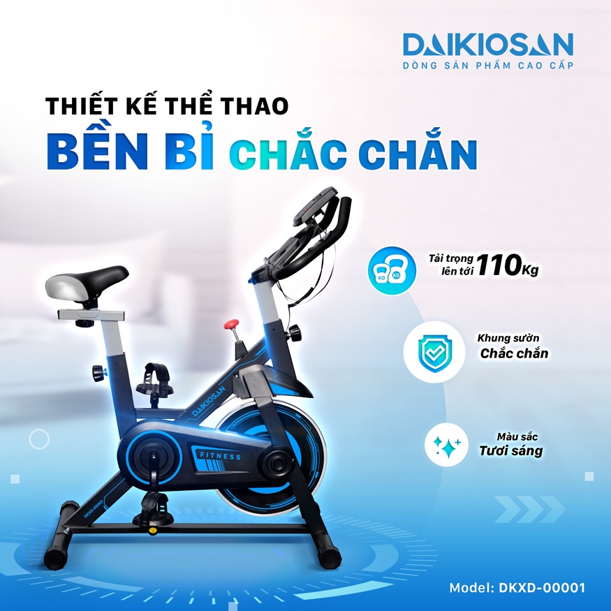 Phối hợp giữa sắc đen mạnh mẽ thời thượng và màu xanh dương tươi mát hài hòa, xe đạp thể dục trong nhà Daikiosan DKXD-00001 có thiết kế vô cùng nổi bật, không kém phần sang trọng, đậm chất thể thao.
