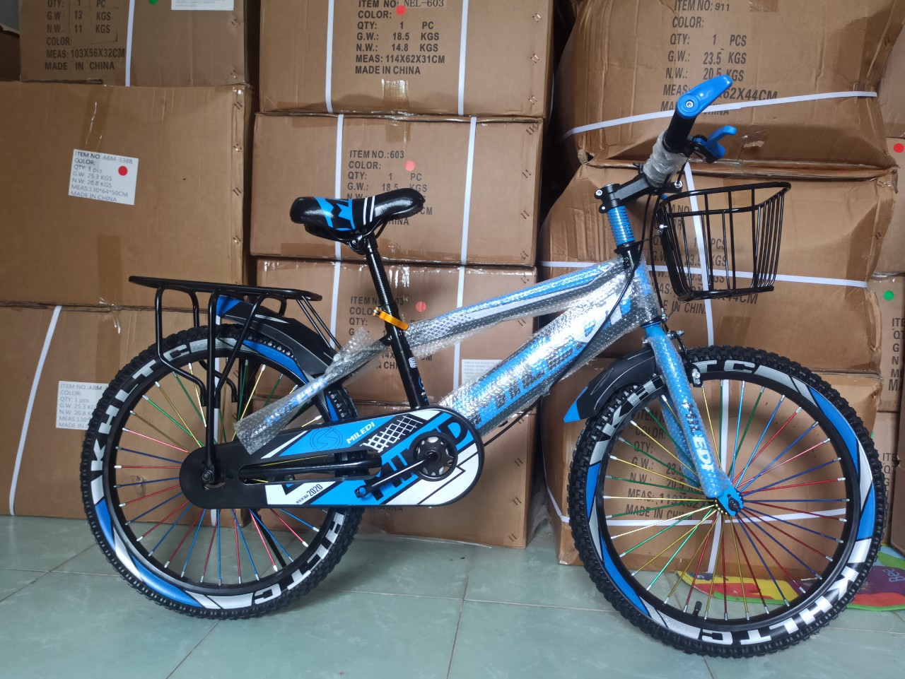 | Quy cách đóng gói | XE ĐẠP THỂ THAO CỠ 18 INCH CHO BÉ TRAI 6-9 TUỔI - tặng kèm giỏ + GacbagaChất liệu khung: Hợp kim sơn tĩnh điện Vành nhôm, đũa thép gia cường Phanh trước và sau sử dụng phanh thường Xe có bánh phụ có thể tháo rời, có chỗ gá chân chống. Xe dùng săm bơm hơi, lốp cao su cao cấp.Xe được tặng kèm giỏ xe và gácbaga |