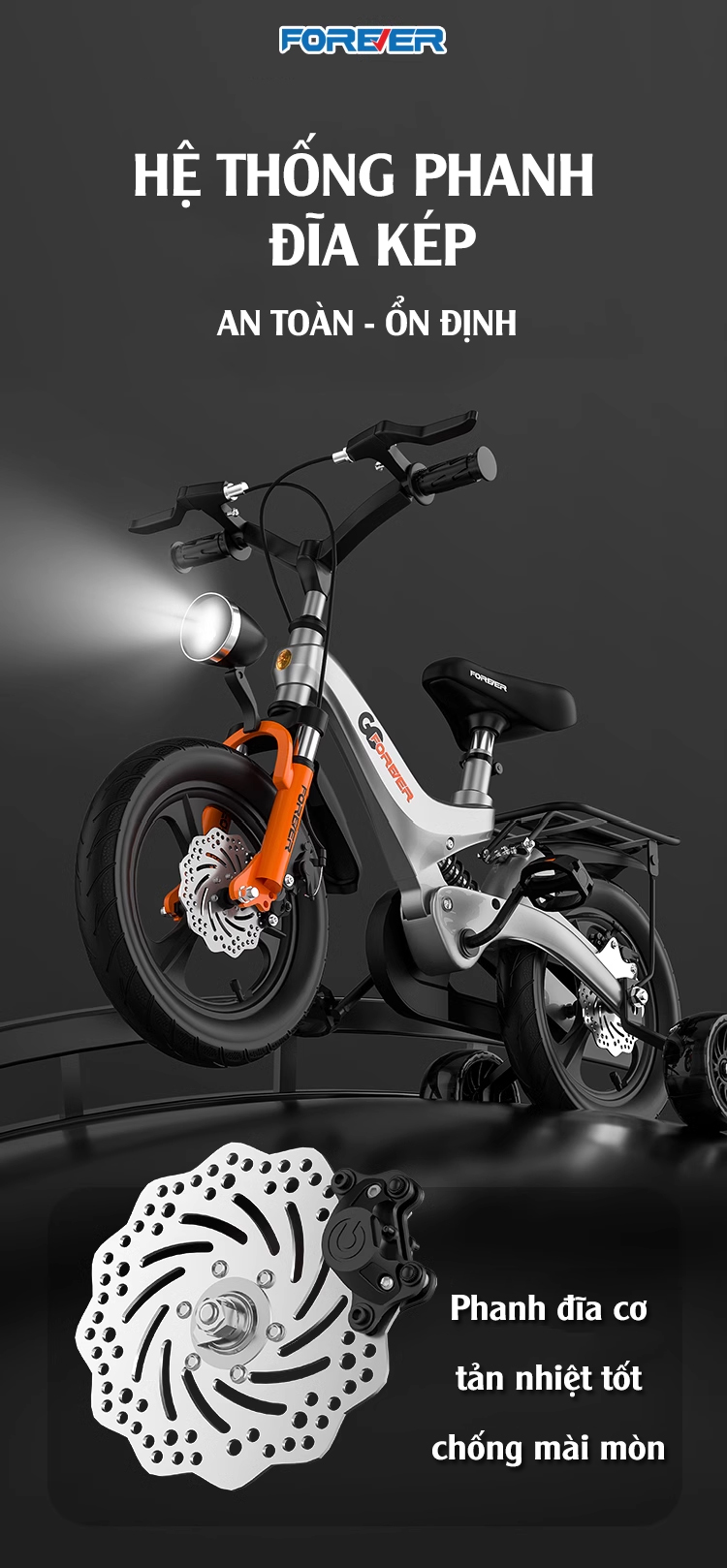 Mã Sản Phẩm :** FOREVER : Vành đúc, 2 phanh đĩa , tay lái gập, có giảm sóc- Xe Đạp Trẻ Em FOREVER cao cấp phù hợp cho các bé từ 2 - 8 tuổi Khung : Đúc nguyên khối bằng hợp kim Magiê siêu nhẹ, thiết...