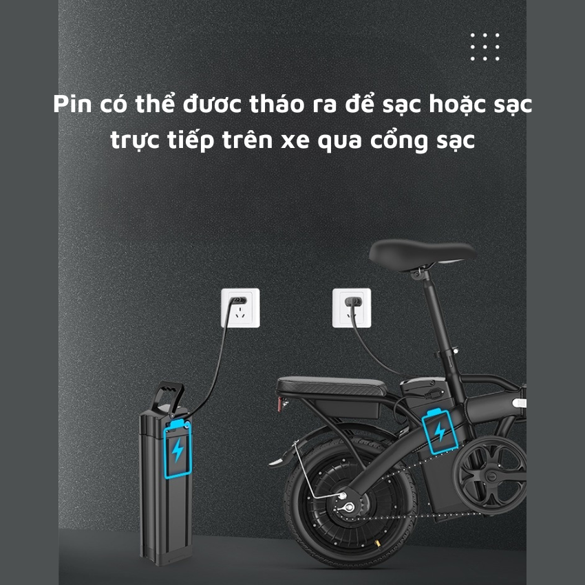 Xe Đạp Trợ Lực Điện Gấp Gọn Phanh Đĩa Kép 14inch, Xe Đạp Điện Người Lớn Pin Khỏe Tốc Độ 25km/hTHÔNG TIN SẢN PHẨM:- Chức năng tự sạc: Khi hết điện có thể đạp để sạc lại xe và đạp cũng rất nhẹ, xe đi...