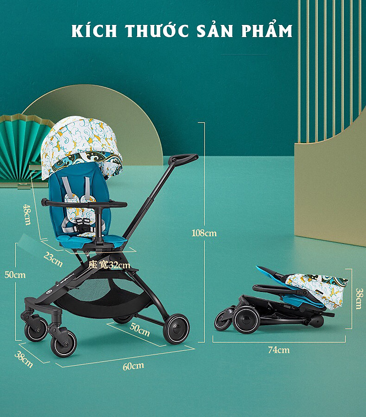 Đặc điểm:Sản phẩm xuất thị trường Châu Âu.Dòng sản phẩm chuyên dùng cho du lịChất liệu: Hợp kim, nhựa dẻo nguyên sinh PP.Ghế ngồi rộng ngang 32x23cm, tựa lưng cao 48cm, có mái ché rộng lớn chống tia UV, chống thấm nước.Ngả lưng 2 cấp độ thích hợp cho trẻ biết ngồi tới 6 tuổi(95 độ, 150 độ)Ghế xoay 360 độ rất tiện lợi để đảo chiều.Ghế cao so với mặt đất là 50cm cho tầm nhìn thoáng và tránh khói bụi.Chiều dài ở tư thế nằm 71cm.Có phanh chân tiện lợi, chắc chắn, và lò xo chống sốcĐai an toàn lớn 5 điểm, điều chỉnh.Rào an toàn tháo gập .Thiết kế gọn nhẹ dễ di chuyển.Dễ gấp gọn, mang theo.Cân nặng: 6KGGấp gọn: 38x74cmKích thước: 108x60x50cmTải trọng: 40KG