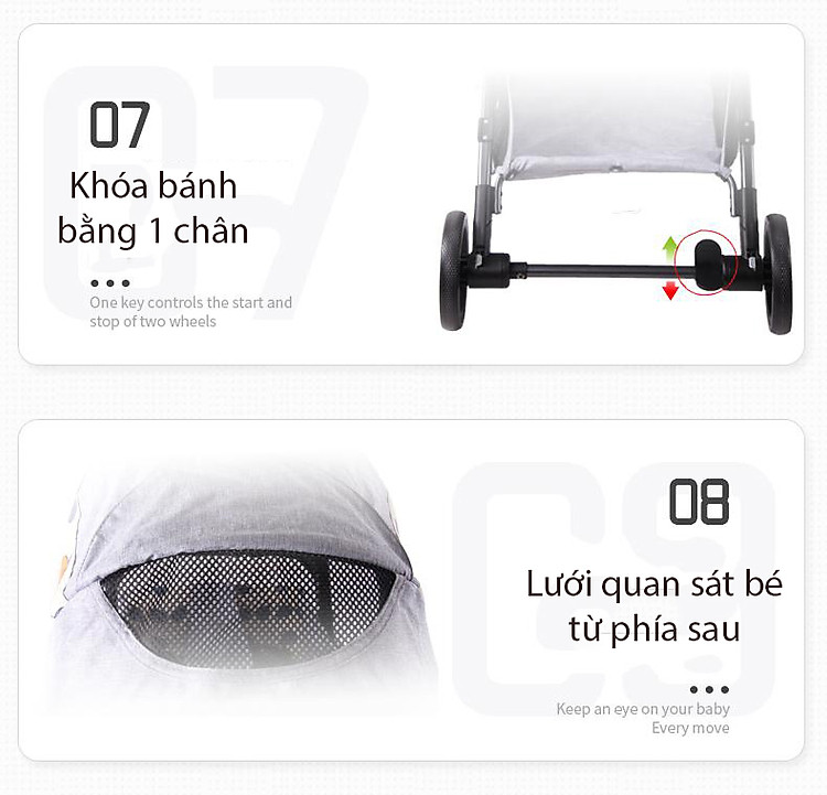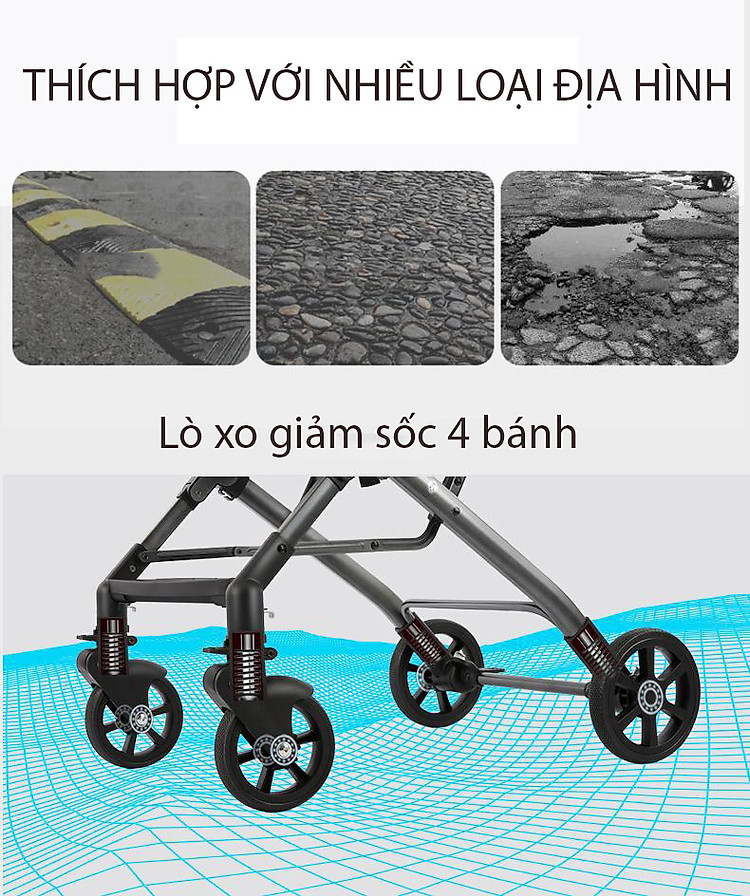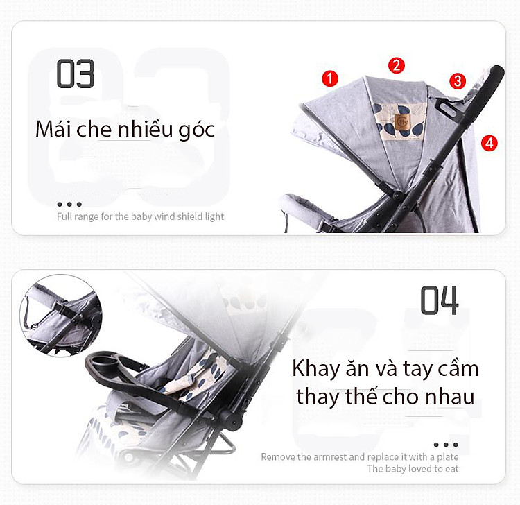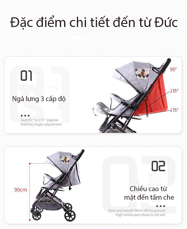 Xe đẩy gấp gọn 3 tư thế: nằm, ngả, ngồi siêu nhẹ