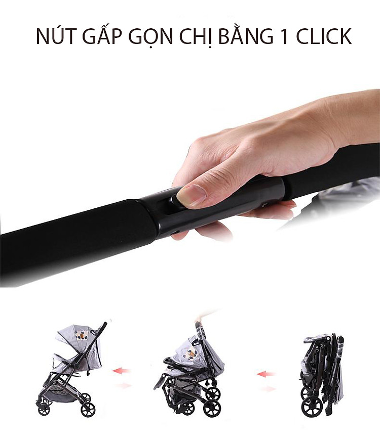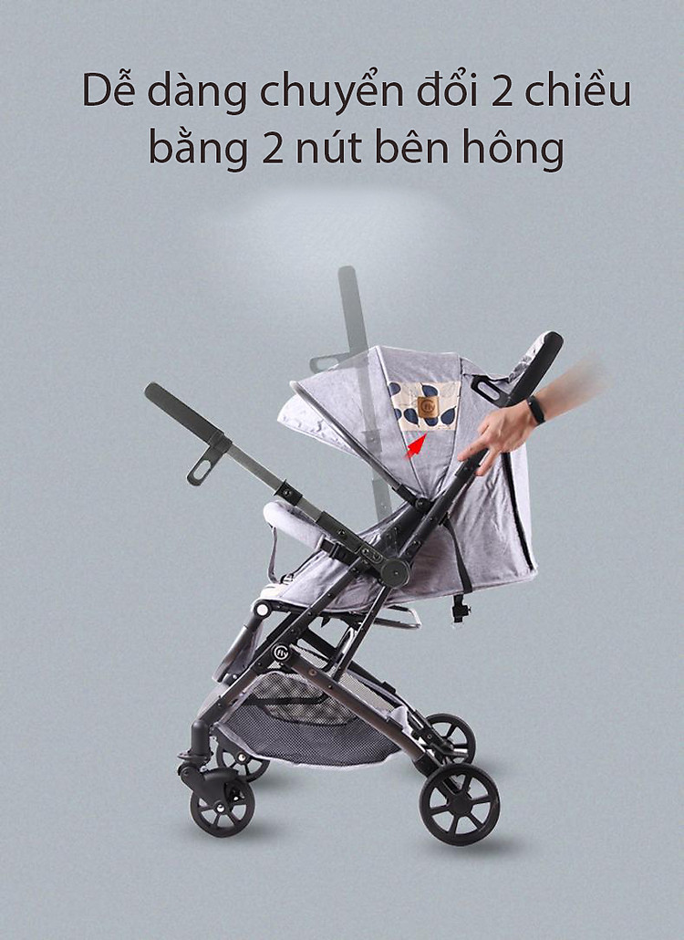 Xe đẩy gấp gọn 2 chiều tiện lợi với 1 nút chuyển đổi.