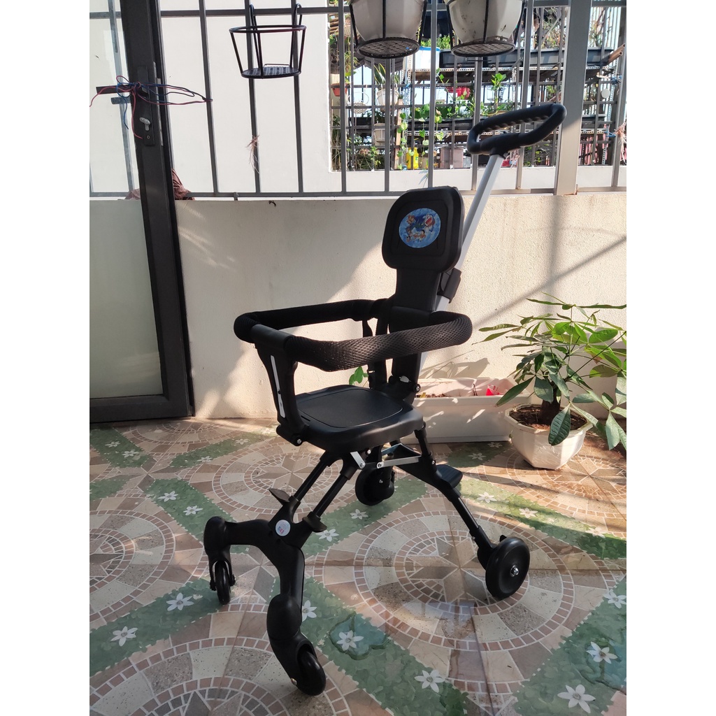 - Ghế ngồi của xe xoay được 2 chiều nên bé có thể để chân được khi xoay ghế theo mỗi chiều. Trên ghế đều có hệ thống dây đai an toàn giúp giữ bé đúng tư thế