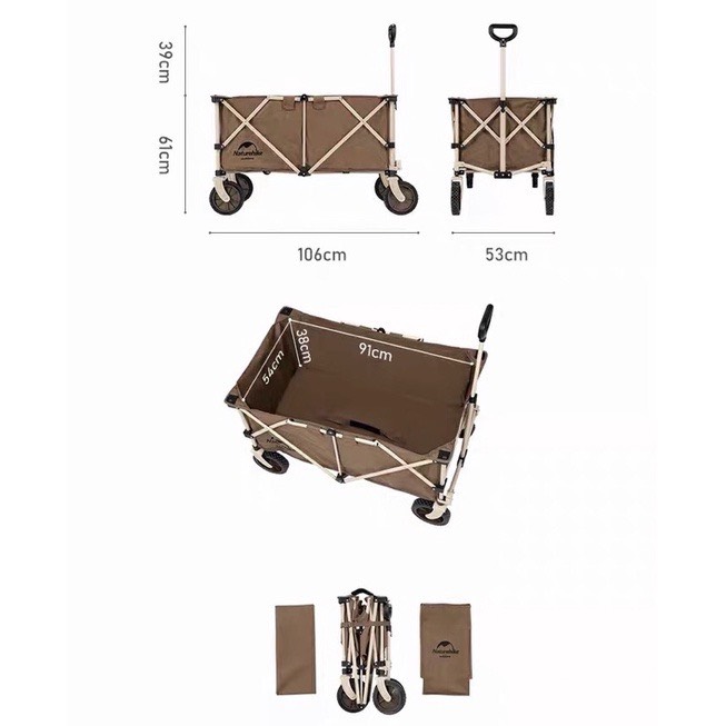 Kết hợp với hệ thống khung được làm từ ống thép chịu lực lớn. Tổng quan, ngoài tải nặng, chở nhiều đồ, dễ vệ sinh. Thông số kỹ thuật cho thấy khi gấp gọn xe đẩy cắm trại đa năng Natuehike NH20PJ005 chỉ còn dài 30 x 32 x 62 cm cho các chiều rộng và cao còn lại. Xe đẩy cắm trại Natuehike NH20PJ005 trông chỉ tương tự như một chiếc thùng đá, hay hộp đựng thức ăn chúng ta mang theo khi đi cắm trại.