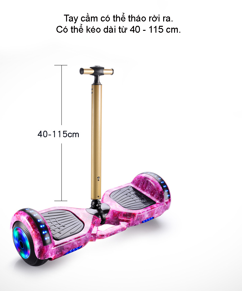 - Tay cầm có thể tháo rời ra. Có thể kéo dài từ 40 - 115cm.