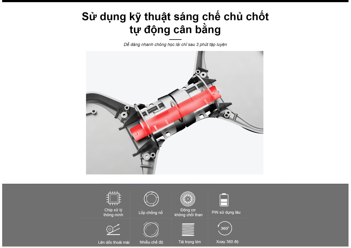 Sử dụng kỹ thuật sáng chế chủ chốt tự động cân bằng – Dễ dàng nhanh chóng học lái chỉ sau 3 phút tập luyện.