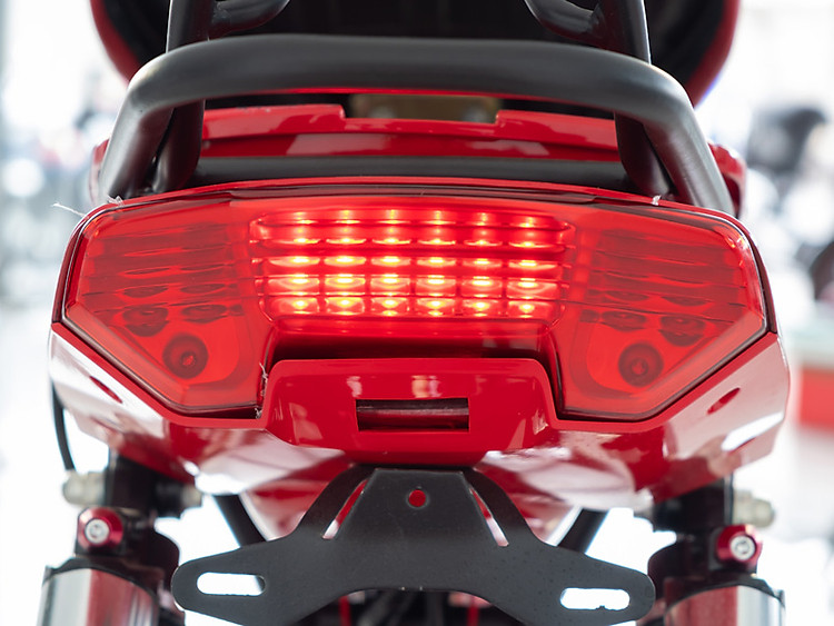Đèn hậu với thiết kế nguyên khối Xe điện JVC eco S600i MayBach sử dụng cụm đèn hậu thiết kế nguyên khối bao gồm một đèn hậu và hai đèn xi nhan, được đồng bộ với các nút điều khiển phía trên giúp người điều khiển có thể thông báo các trạng thái vận hành của xe cho các phương tiện di chuyển cùng chiều. Phía trên có tay cầm giúp người sử dụng có thể dễ dàng cầm nắm và xoay đầu chiếc xe trong quá trình sử dụng, phía dưới đèn hậu là bát bắt biển số giúp trang trí cho phần đuôi xe.