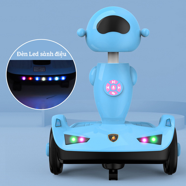 Chắc chắn khi nhìn chiếc xe cùng hệ thống đèn LED bắt mắt toàn bộ xe điện LL-G2, bạn sẽ phải công nhận xe giống như một chiếc phi thuyền thu nhỏ, cực đẹp mắt mà độc đáo. Xe có 1 vòng tròn rỗng nhỏ phía trước được trang bị 1 dải đèn LED nhấp nháy, đồng thời khắp phần đẻ chân phía sau cũng được trang bị dải đèn LED phát sáng mỗi khi trẻ bật nhạc, đảm bảo trẻ sẽ thích mê khi ngồi xe.