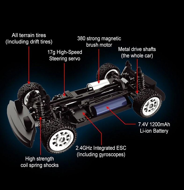 Xe UDI 1601 RC bánh xe có thể hoán đổi cho nhau để on-road and off-road drift (đổi sang drift lốp). Khả năng Drift rất dễ dàng với điều khiển con quay hồi chuyển ESP trên bo mạch. Thiết kế siêu ngầu, có đèn pha led sáng khi chơi vào ban đêm.