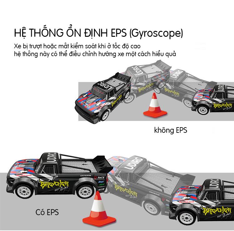 Khi điều khiển xe xảy ra trượt bên hoặc mất kiểm soát, nó có thể kịp thời điều chỉnh hướng xe. Chức năng và độ nhạy của cảm biến con quay hồi chuyển có thể được điều chỉnh và tắt bằng núm ESP của tay cầm điều khiển.