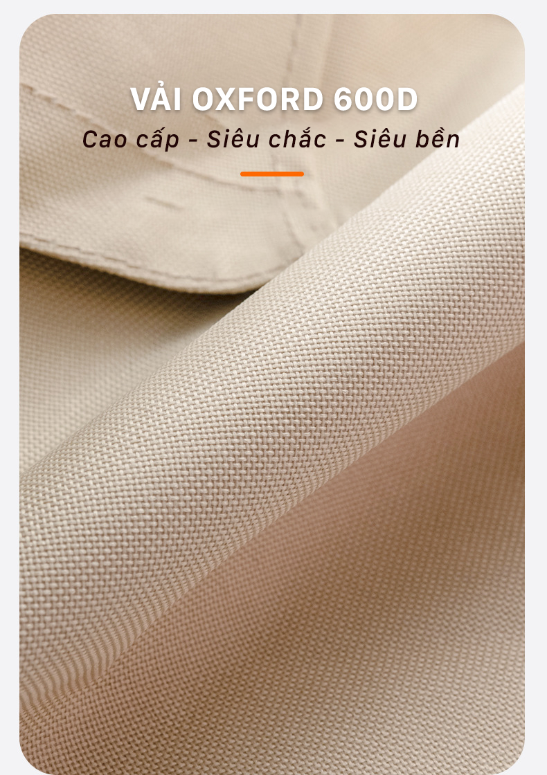 Chất liệu vải: Oxford 600D + hộp carton sóng 5 lớp