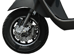 Bánh trước với vành đúc hợp kim và giảm sóc dầu Xe máy điện Dkbike Vespa Roma S có bánh trước với vành đúc hợp kim và giảm sóc dầu êm ái, được bao quanh bởi lốp cao su không ruột độ bền cao, thắng đĩa vơi diện tích lớn an toàn tuyệt đối cho người sử dụng. |