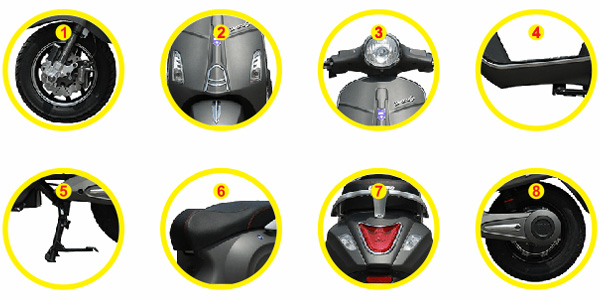 Chi tiết xe máy điện Dkbike Vespa Roma S Động cơ mạnh mẽ ở bánh sau Xe máy điện Dkbike Vespa Roma S sử dụng động cơ mạnh mẽ có công suất lên đến 1000W được bố trí ở tâm của bánh sau, có thể đạt vận tốc tối đa là 50km/h, với khản năng tắc tốc nhanh, ít tiêu hao năng lượng. |