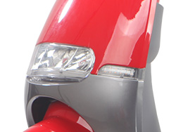 Đèn pha led chiếu sáng Xe máy điện JVC eco Gogo Plus 2020 với hệ thống đèn led chiêu sáng nguyên khối được bố trí ở mặt nạ phía trước của của, được thiết kế từ các bòng đèn led có độ bền cao và khả năng chiếu sáng gấp 5 lần so với các bóng đèn cùng loại. Đèn pha được đồng bộ với các nút điều khiển phía trên, giúp người sử dụng hoàn toàn có thể vận hành theo nhu cầu sử dụng. Đèn xi nhan được bố trí đối xừng nằm ở hai bên của đèn pha, giúp người điều khiển có thể dễ dàng thông báo hướng chuyển động của xe khi vận hành cho các phương tiên khác. |