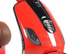 Mặt nạ phía trước với điểm nhấn nổi bật Xe máy điện JVC eco Limited Vespa có điểm đáng chú ý, gây ấn tượng cao nhất là phần mặt nạ phía trước của xe, với phần viền phủ bóng bao quanh sang trọng. Mặt nạ phía trước là một khối nhựa lớn, được thiết kế cong tạo nét thanh thoát. Chính giữa là tấm ốp được phối màu tương phản tao sự phá cách, hiện đại ngay từ cái nhìn đầu tiên. Đối xứng hai bên là đèn xi nhan lớn hình thoi, được làm tư các bóng led và được đồng bộ hóa với các nút thao tác ở tay lái dễ dàng sử dụng. |