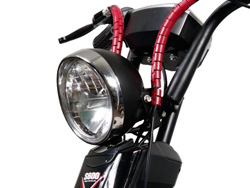 Đèn pha siêu lớn đặt ở đỉnh đầu của xe Xe máy điện JVC eco Maybach S600 có trang bị đèn pha siêu lớn, được đặt ở chính giữa hai tay lái, tạo góc quan sát và tầm quan sát hoàn hảo cho người sử dụng. Phía trên là mặt đồng hồ điện tử giúp hiện thị các tình trạng của xe cho người sử dụng khi đang vận hành như vân tốc, mức năng lượng và các tín hiệu đèn. |