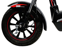 Bánh trước với vành đúc hợp kim Xe máy điện JVC eco Maybach S600 với bánh trước với vành đúc hợp kim 16 inh sơn đen, viền đỏ tạo điểm nhấn nổi bật. Bao quanh là lốp cao su không ruột với bề mặt tiếp xúc rộng rãi, giúp xe có thể vượt qua các dạng địa hình một cách dễ dàng. Nối cụm bánh trước với thân xe là cặp giảm sóc chịu lực giúp xe di chuyển nhẹ nhàng quá các dạng địa hình. |