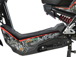 Để chân được bố trí phù hợp Xe máy điện JVC eco Xmen No.1 có để chân được thiết kế khoảng cách phù hợp, được kéo dài theo phần thân dưới của xe với các g nhỏ giúp chống trơn trượt và tăng ma sát trên bề mặt, tăng độ an toàn tuyệt đối cho người sử dụng khi vận hành. Phía dưới để chân là dãy bình ắc quy gồm 5 bình lớn, được đặt dứng theo quy chuẩn, giúp chống nước và tăng tuổi thọ cho bình ắc quy trong quá trình sử dụng. Phía dưới ngăn bình là các chân chống có thể gạt mở một cách dễ dàng, giúp người điều khiển dễ dàng sử dụng trong quá trình vận hành. |