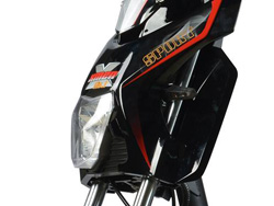 Phần mặt nạ và đèn pha chiếu sáng Xe máy điện JVC eco Xmen No.1 có phần mặt nạ phía trước được thiết kế nhô hẳn ra phía ngoài, với thiết kế nguyên khối được lấy ý tưởng từ những chú rô bô trong các bộ phim khoa học viễn tưởng, tạo ấn tượng và điểm nhấn nổi bật ngay cái nhìn đầu tiên cho toàn bộ chiếc xe. Đèn pha được thiết kế hình trái tim góc canh, sử dụng bóng đền Halogen, có thể hoạt động ở hai chế độ chiếu sáng xa và gần. Đối xứng hai bên đèn pha là đèn xi nhan led độ bền cao, kiểu dáng thời trang, giúp người sử dụng đễ dàng thông báo hướng chuyển động của xe cho các phương tiện di chuyển ngược chiều. |