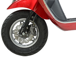 Bánh trước với lốp không ruột và thắng đĩa Xe máy điện JVC LX 2020 có bánh trước với lốp cao su không ruột 90/90-10 với mặt tiếp xúc lớn và độ bền cao, bao quanh vành đúc hợp kịm La zăng. Thắng đĩa được đặt ở tâm của bánh xe và đồng bộ hoàn toàn với tay thắng phía trên giúp người sử dụng có thể dễ dàng làm chủ tốc đọ của chiếc xe khi vận hành ở tốc độ cao. Nối toàn bộ cụm bánh trước với thân xe là cặp giảm sóc chịu lực giúp chiếc xe vượt qua các địa hình một các êm ái nhất. |