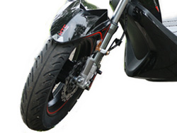 Bánh trước với giảm sóc dầu đằng cấp Xe máy điện V5 sử dụng vành đúc La zăng độ bền cao, chống rỉ sẽ và kiểu dáng thời trang. Ở giữa là thắng đĩa lớn, được đồng bộ với tay lái giúp người điều khiển dễ dàng làm chủ tốc độ của xe. Bao quanh bánh xe là lốp cao su không ruột có mặt tiếp xúc lớn, giúp xe vận hành dễ dàng qua các dạng địa hình khác nhau. Toàn bộ phần bánh trước được nối với thân xe thông qua cặp giảm sóc dầu lớn được sản xuất theo công nghê của xe gắn máy. |