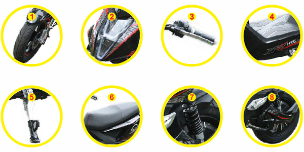 Chi tiết xe máy điện HTC V5 Động cơ được sản xuất theo công nghê Nhật Xe máy điện V5 có động cơ được đặt ở tâm bánh sau, giúp xe tăng tốc nhanh hơn, giảm hao phí trong quá trình vận hành, vì truyền động trực tiếp không qua các bộ phận trung gian. Động cơ có công suất 1000W được sản xuất theo công nghệ của Nhật Bản, với độ bền cao, chống nước tuyệt đối và được bảo vệ lên đến 24 tháng sử dụng. |