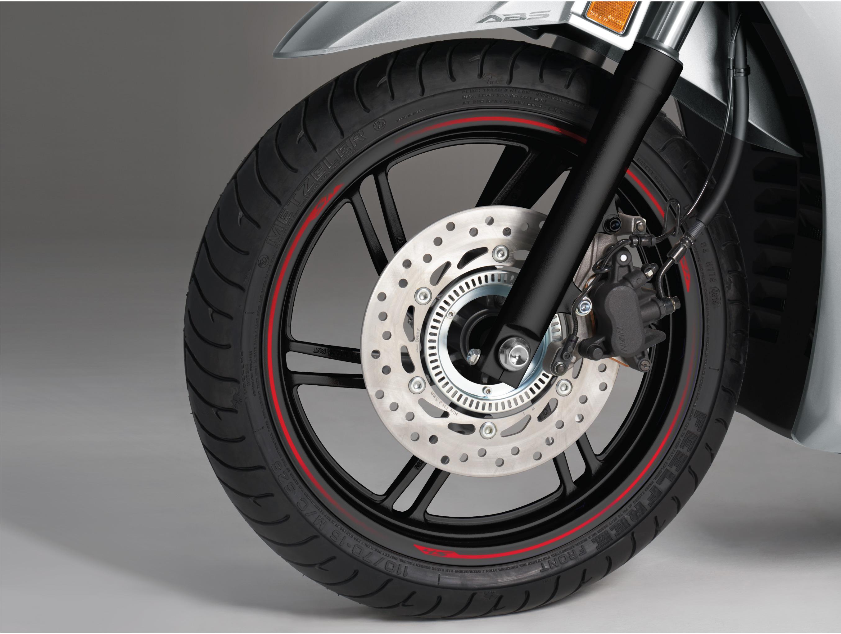 SH350i được trang bị hệ thống chống bó cứng phanh (ABS) trên cả bánh trước và bánh sau, giúp xe đạt trạng thái cân bằng ổn định bằng cách phân bổ lực phanh hợp lý tránh khóa cứng bánh xe, đặc biệt hữu ích trong điều kiện đường trơn ướt, gồ ghề hay phanh gấp ở tốc độ cao.