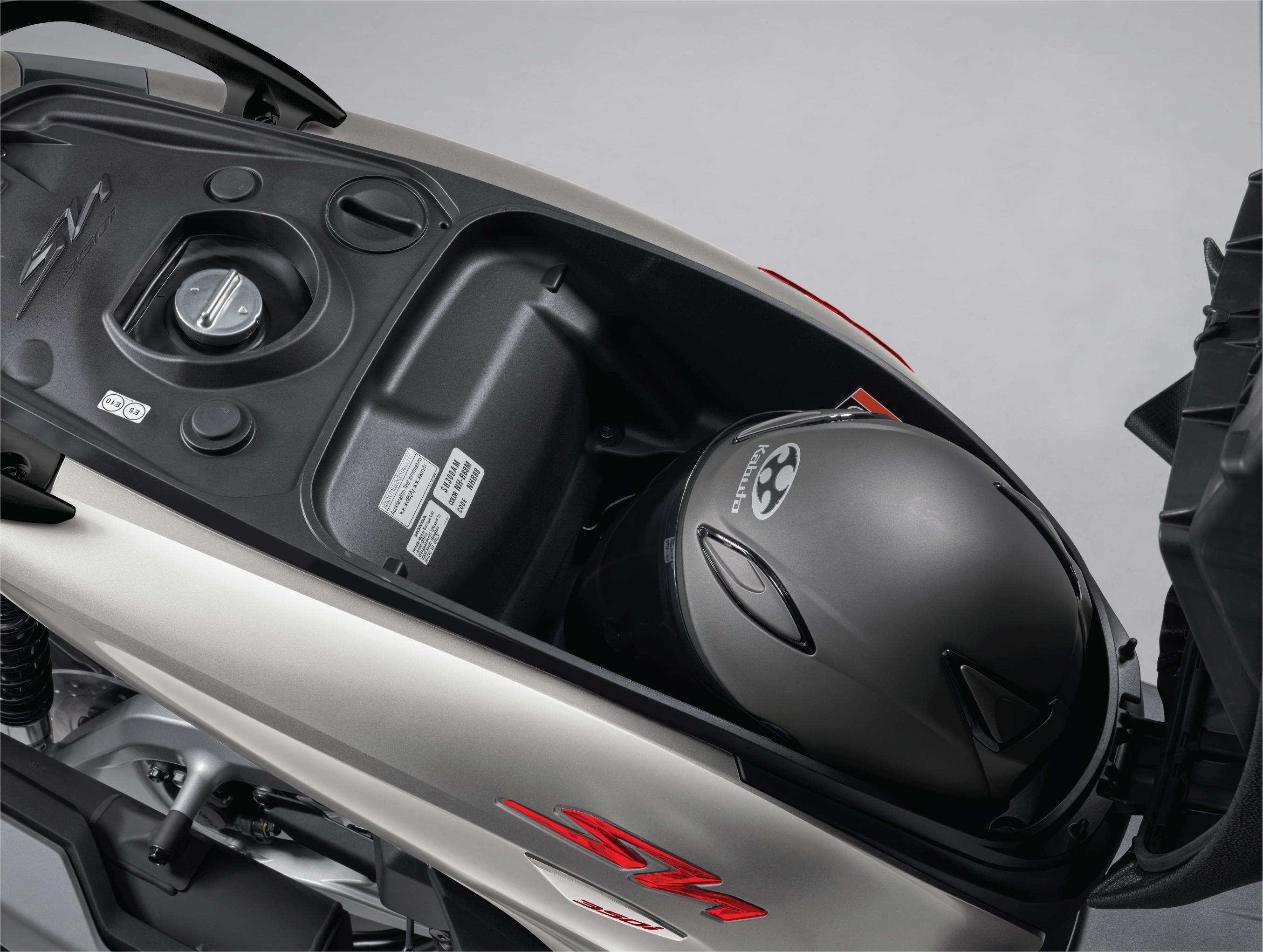 Phiên bản SH350i được trang bị cốp đựng đồ nằm dưới yên xe với dung tích lớn, có thể chứa được một mũ bảo hiểm cả đầu. Dung tích bình xăng lớn hơn, lên tới 9,3 lít.