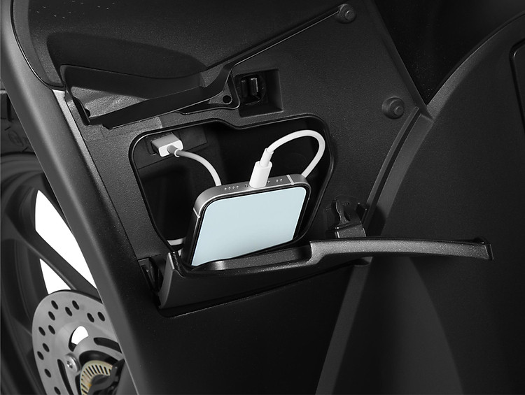 Hộc để đồ phía trước bên trái dạng nắp mở, tích hợp cổng sạc USB vô cùng tiện lợi.