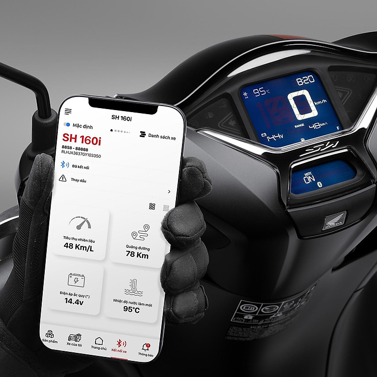 Công nghệ bluetooth kết nối với điện thoại thông minh tiếp tục được trang bị trên SH160i. Khi kết nối qua Bluetooth với ứng dụng My Honda+, khách hàng có thể đọc toàn bộ các thông tin xe như tình trạng vận hành, thông tin sửa chữa, bảo dưỡng, bảo hành, lịch sử và bảng xếp hạng tiêu hao nhiên liệu, thông tin các sản phẩm mới hoặc sự kiện của HVN.