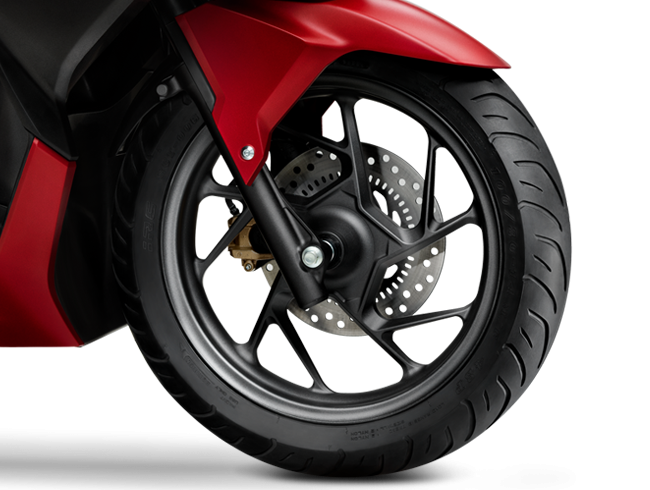 VARIO 160 được trang bị bộ lốp lớn và dày giúp tăng khả năng bám đường và sự ổn định khi vận hành. Kích thước lốp lớn (100/80-14 cho bánh trước và 120/70-14 cho bánh sau) kết hợp với bộ mâm hình chữ Y góp phần tạo nên hình ảnh mạnh mẽ và nổi bật.